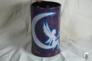 20 OZ Moon Fae 20 oz Moon Fae, tooled outline with painted moon and fairy. Marbleized purples blues and violets for a background.