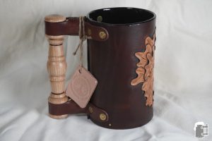 20 oz traditional Greenman with deep carving relief on dark brown