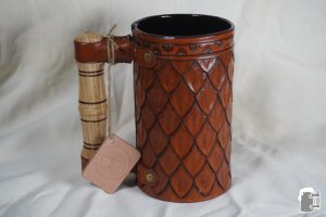 A 22oz mug with dragon scale inspired hand tooling slightly taller than our standard 20oz mugs.